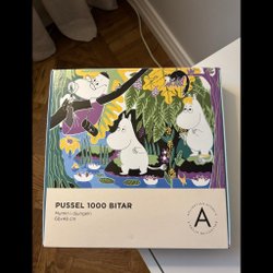 Ett pussel med Mumin motiv. Storlek 48 cm x 34 cm. Komplett lagt en gång. Hund finns I hemmet