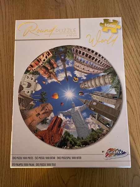 Runt pussel med 1000 bitar.