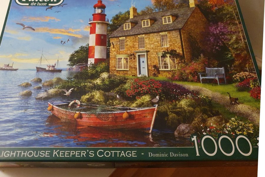 Falcon de luxe pussel med motiv av The Lighthouse Keeper's Cottage, designad av Dominic Davison. 1000 bitar. Köpt som komplett. Har dock inte lagt det själv.
