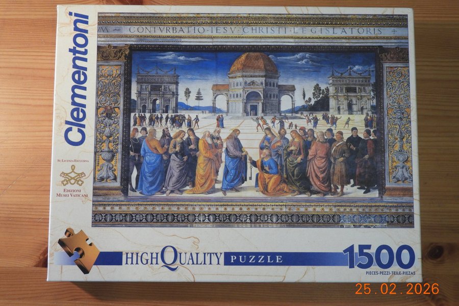 Clementoni pussel med 1500 bitar. Pusslet är av hög kvalitet och har motivet "CONTVRBATIO IESV CHRISTI LEGISLATORIS". Utgiven av Edizioni Musei Vaticani.