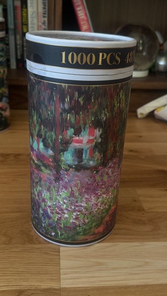 Pussel med 1000 bitar. Pusslet har ett motiv av en trädgård med blommor och ett hus i bakgrunden. Komplett