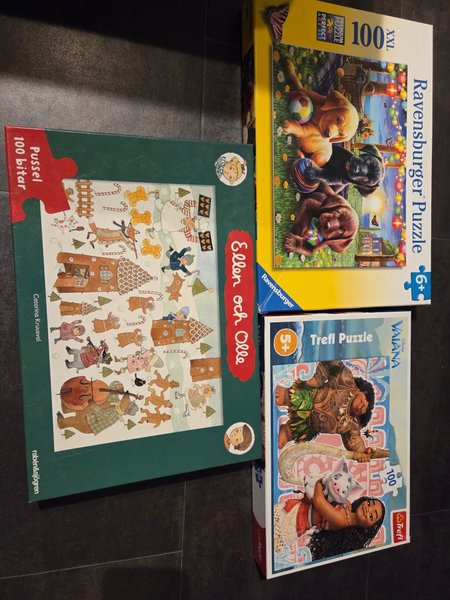 Innehåller Ravensburger, Trefl och Rabén & Sjögren pussel.