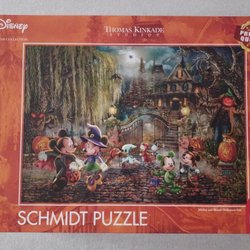 Pussel från Disney Thomas Kinkade Studios. Pusslet har 1000 bitar och motivet är "Mickey and Minnie in the Alps".