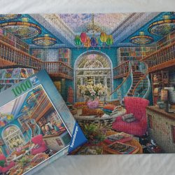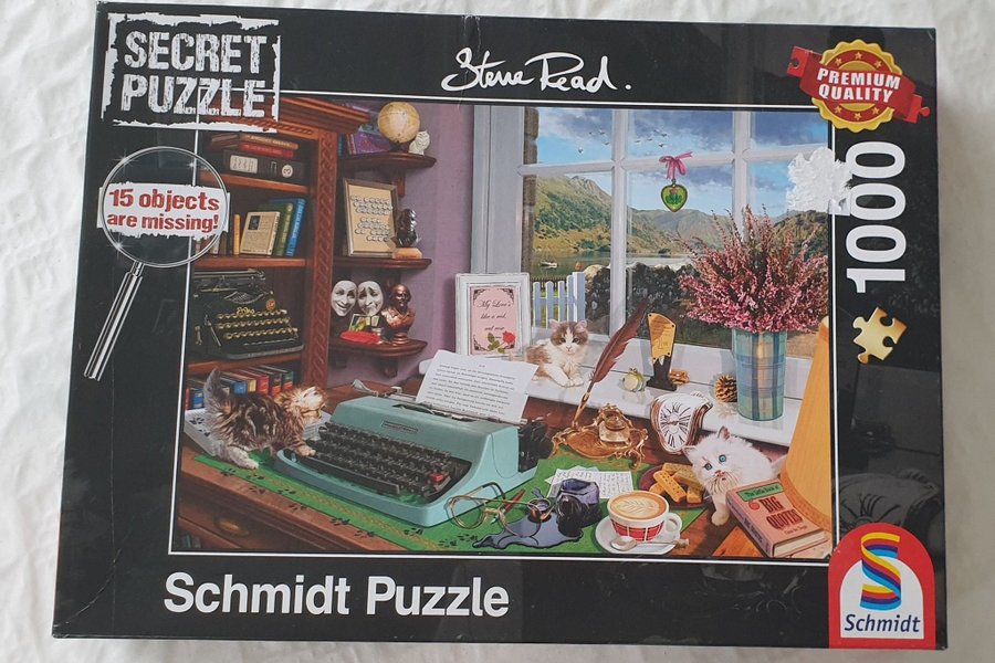 Pussel från Schmidt med 1000 bitar. Pusslet är ett "Secret Puzzle" där 15 objekt saknas i bilden.