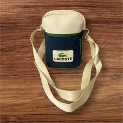 Vit axelremsväska med svarta detaljer och justerbar rem. Väskan har flera fack med dragkedja och sidofickor i mesh.
