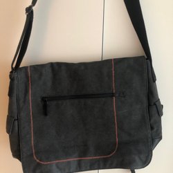 Axelremsväska med flera dragkedjsförsedda fack.