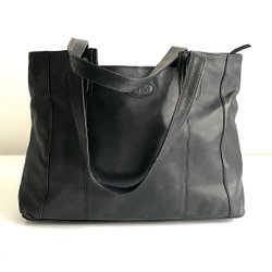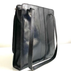 Chokladbrun handväska med ett justerbart band skärp som går runt väskan och stängs med ett spänne. Väskan har två handtag och stängs med en tryckknapp, en innerficka