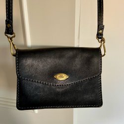 Klassisk svart axelremsväska från The Bridge. Väskan har ett justerbart axelband, ett lock med spänne och flera fack för förvaring. Perfekt för att bära dina viktigaste ägodelar med stil. Axelbandet längd max 133 cm. Minimum 400 kr.