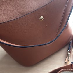Brun handväska med ett handtag. Väskan har en enkel och stilren design.