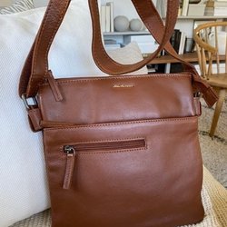 Väskan har två handtag och bärs bekvämt på axeln.