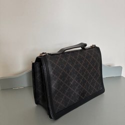 Svart väska med leopardmönster. Den har vikt modell så den kan ha mer utrymme. Väskan har dekorativa tofsar på dragkedjan. Enda skavanken är att den skrapats i vänstra nedersta hörnet och lite på axelremmen.