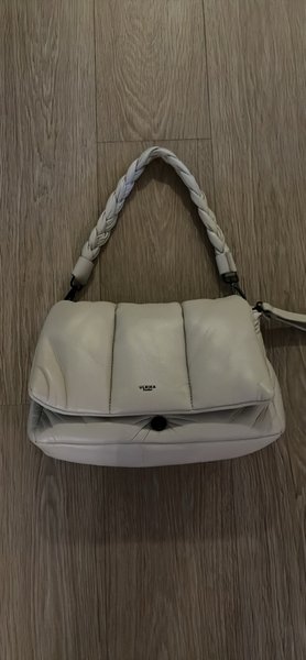 Beige/naturvit väska med flätat handtag .Väskan har ett större fack sen små inuti. Två olika längder på axelbandet.