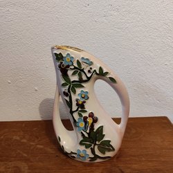 Handtag: från väskan upp till handtagets mitt 29 cm, deras hela längd 66 cm. Höjd 34 cm Längd 50,5 cm Bottens bredd 13 cm Fickans blixtlåslängd 21 cm Väskans blixstlåslängd 45 cm Pärlbroderi, svart, på framsidan