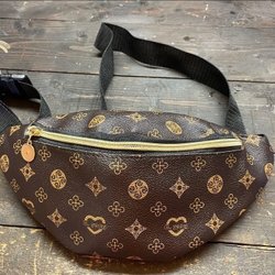 Snygg svart väska med ett distinkt mönster och flera fack med dragkedja. Perfekt för att hålla dina värdesaker organiserade och säkra.