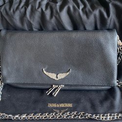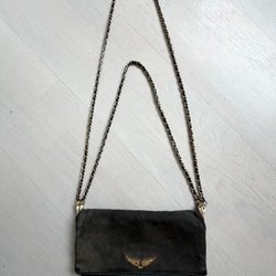Pouch/clutch från Zadig & Voltaire med två fack som stängs med dragkedja. Väskan har ett handledsband och ett tryck av en fjäril på baksidan. Fint skick