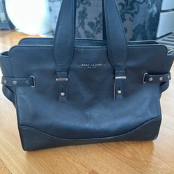 Italiensk läder väska med silverfärgade detaljer. Elegant större handväska som är väldigt användbar. Väskan har ett ytterfack med dragkedja på baksidan. Insidan är fodrad med ett svart tyg och har flera fack, med dragkedjor. Förlängningsrem ingår. Använd fåtal gånger.