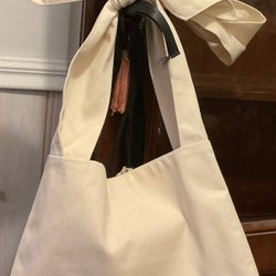 Damyanti Wool Pouch från Mehrotra (Sofia Mehrotra) i 100% ull (utsidan) och silke (insidan). Nypris; 2 500 kr. Flätat handtag…och långa band att knyta väskan med.