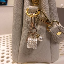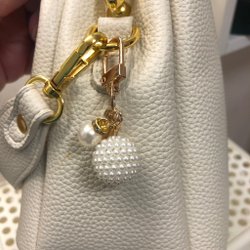 Svart handväska med guldfärgade detaljer. Väskan har ett handtag och en avtagbar kedja. En dekorativ rosett medföljer.Väskan är handsydda av mig.