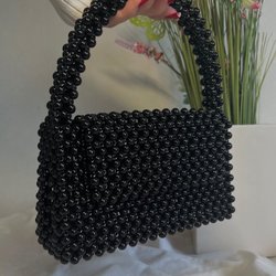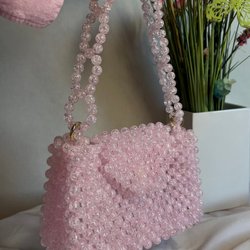Vit pärlväska med silverfärgade handtag. Väskan har en unik och stilren design som passar perfekt för speciella tillfällen eller för att piffa upp en vardagslook.