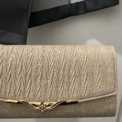 Vit väska med guldfärgad kedja och detaljer. Väskan har ett quiltat mönster och en stor C-logga på framsidan. Den har även en liten dragkedjeförsedd ficka inuti.