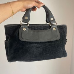 Authentic vintage Celine burgundy leather bag with a Triomphe buckle. The bag comes with its original dust bag. It features a beautiful, structured boxy shape. There are slight signs of wear, such as light scuffs and minor color loss on the hardware, but nothing significant.