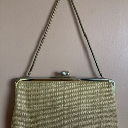 Vacker vintage handväska med broderade blommor i blått, rosa och grönt. Väskan har en guldfärgad metallram och kedja. 1 mindre sidofack på ena insidan. Bredd 18x höjd ca.19cm