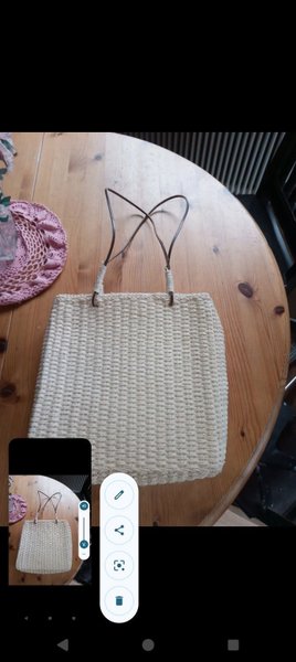 Vit vävd handväska med bruna handtag. Perfekt för en dag på stan eller stranden.läderband.