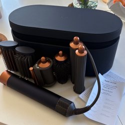 Dyson Airwrap Complete med alla tillbehör. Inkluderar förvaringsväska och bruksanvisning.