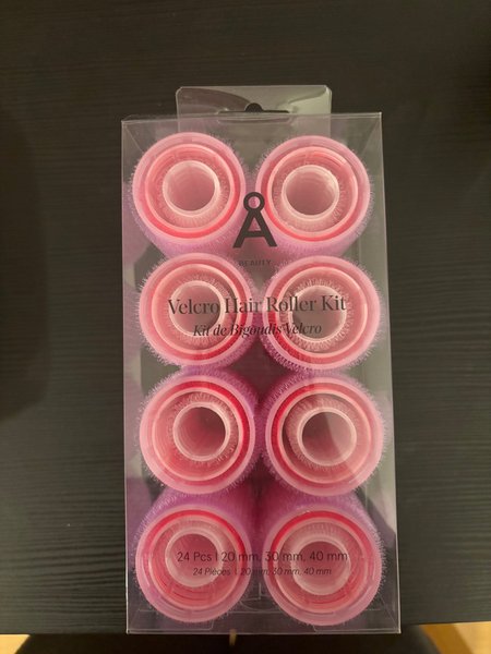 Kit med velcro hårrullar i olika storlekar: 20 mm, 30 mm och 40 mm. Totalt 24 stycken.