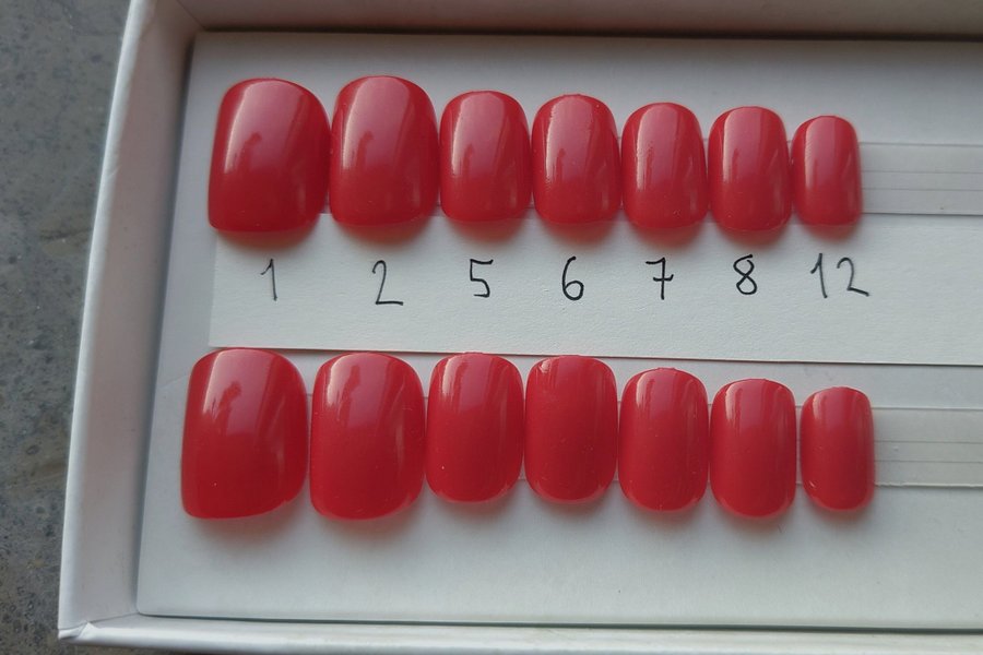 Oanvända naglar från Switch nails. Storlek 1x2, 2x2, 5x2, 6x2, 7x2, 8x2, 12x2. Form Square xs. Säljs utan tillbehör och skickas utan ask (jag packar väl).