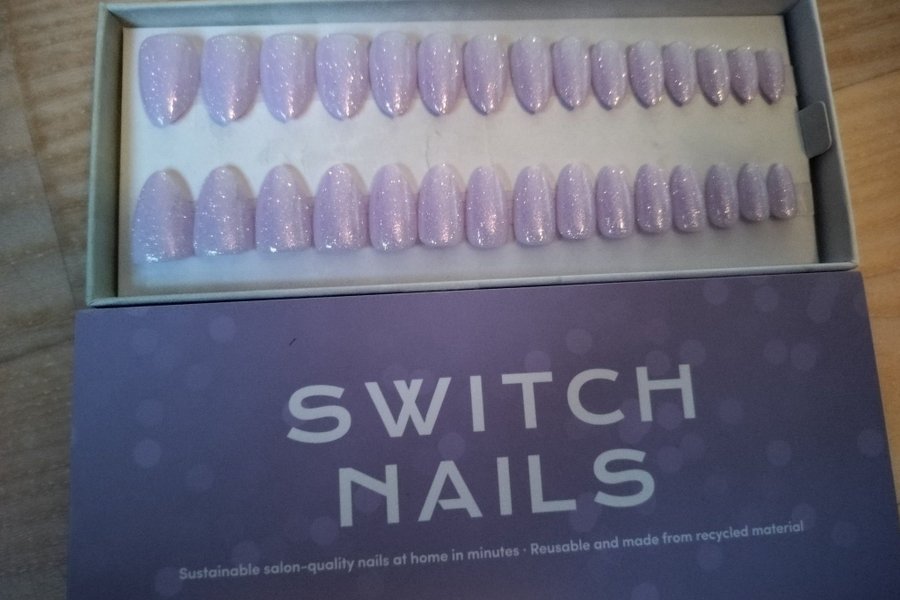 Ett komplett set med lösnaglar från Switch Nails. Återanvändbara och gjorda av återvunnet material.