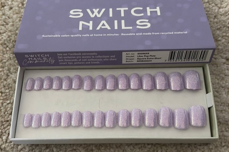 Switch Nails i modellen Lilac Pop Pixie. Naglarna har formen Square Extra Short.