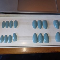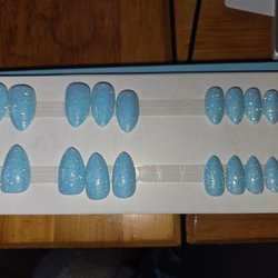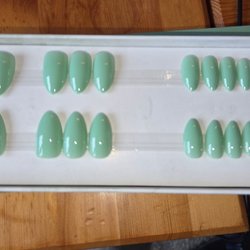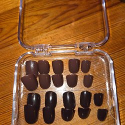 press-on naglar i olika färger och former. Innehåller flera set från olika märken. Oanvända förutom några av Liora glazed pink