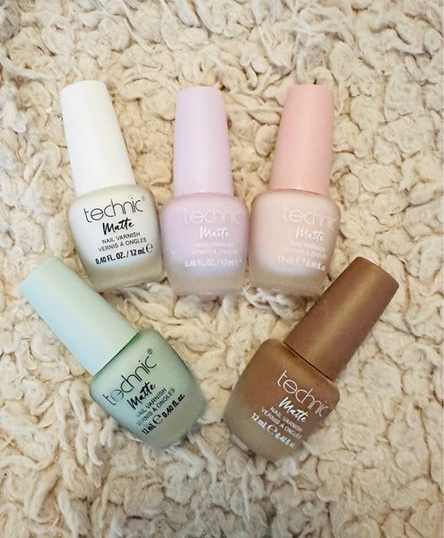 Set med 5 st Technic Matte nagellack i olika färger. Varje flaska innehåller 12 ml.