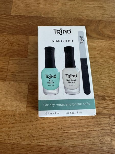 Trind Starter Kit för torra, svaga och sköra naglar. Innehåller nagelbalsam, nagelreparation och nagelfil. Varje flaska innehåller .30 fl.oz. / 9 ml.