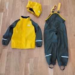 - Praktiska regnkläder som håller barnen torra under skurar.