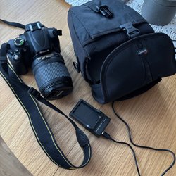 Säljer en Nikon systemkamera med bättre objektiv än original. Inkluderar även en kameraväska.