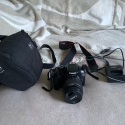 Canon kamera med EFS 18-55 objektiv. Fullt fungerande men skulle behövas ett nytt batteri då de inte håller så länge. Säljes med tillhörande väska, laddare och 8GB minneskort.