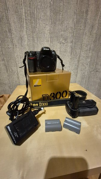 Säljer en Nikon semiproffs systemkamera d300 i bra skick. Kamerahus med axelrem, laddare, 3st batterier och batterigrepp, originalkartong