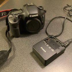 Kameran har en Canon EF-S 18-55mm bildstabiliserande lins. Kameran har en svart rem med röd text. Saknar laddare till batteriet. Sladd till dator följer med tillsammans med väska.