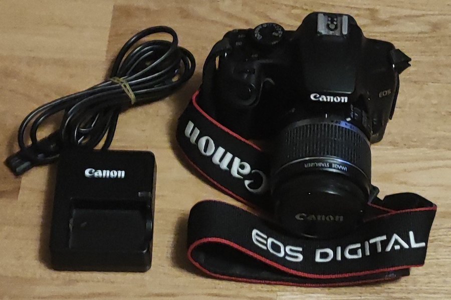 Canon EOS 1000D med EF-S 18-55mm IS objektiv, 4GB minne och laddare.