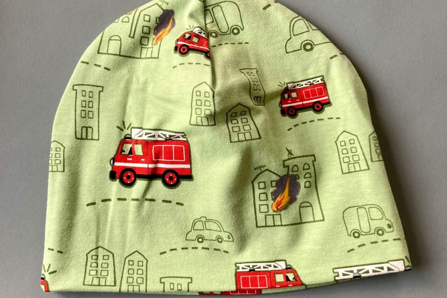 NY! mössa dubbel trikå barnmössa trikåmössa 4 mån - 1 år nysydd hemsydd brandbil