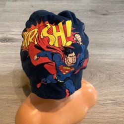 En snygg mössa med ett mönster av vargar mot en blå bakgrund. Mössan är mjuk och bekväm att bära.