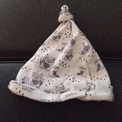 Mjuk och söt mössa med en stor rosett framtill. Perfekt för att hålla huvudet varmt och samtidigt vara söt. 3-6 månader storlek.