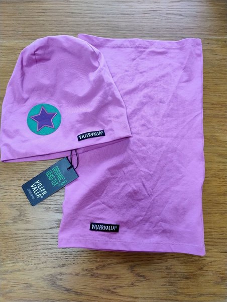 Villervalla mössa (stl 54/56) och halsduk (stl 8-12 år, men ganska smal). Mössa har lappen kvar, halsduken saknar lappen, men är ny/oanvänd.