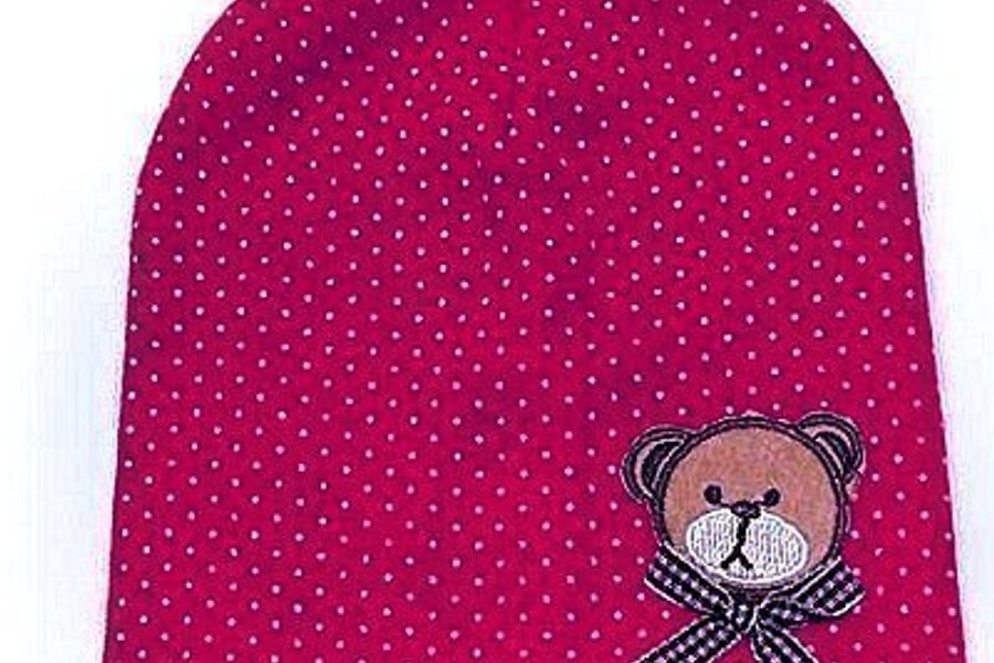 Mössa i 100% bomull för barn med söt nalle och rosett.
