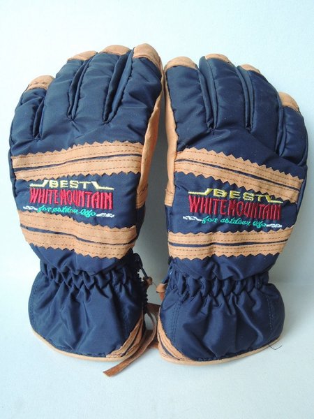 1 par nya blå skidhandskar med välgjorda läderdetaljer i storlek 5.