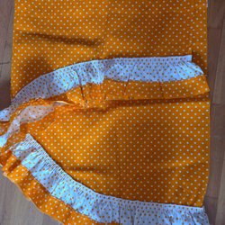 - The long piece is stitched along the middle to create two parts. There are holes in the centre on one side. Measures approx 26-27cm X 367cm
