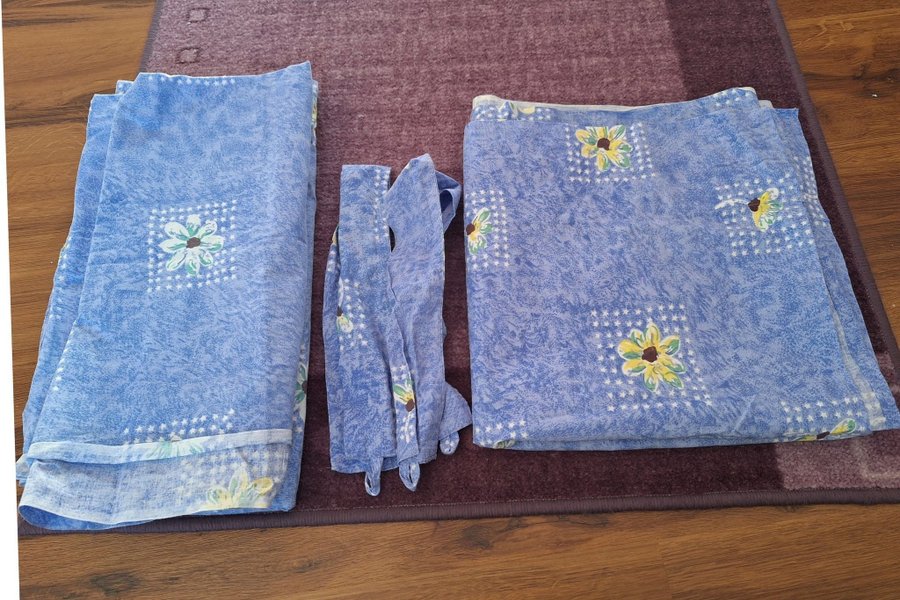 Blå gardiner med blommor