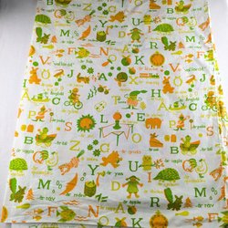 Retro påslakan med ett coolt dinosauriemönster. Ca 150x200. Olika mönster på över och under tyget. Skickar med ett turkost underlakan
